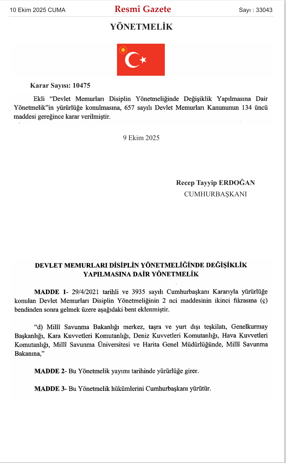 Devlet Memurları Disiplin Yönetmeliğinde Değişiklik Resmi Gazete'de Yayımlandı.