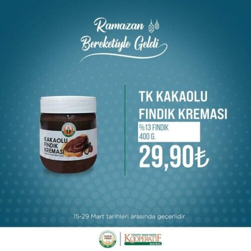 21-29 MART İNDİRİMLİ ÜRÜNLER LİSTESİ Tarım Kredi Kooperatif Marketleri'nde Ramazan ayına özel güncel indirimli ürünler listesi yayınlandı. 21-29 mart tarihleri arasında temel ihtiyaç ürünlerinde birçok yeni indirimler yer alıyor. İşte güncel indirimli ürünler listesi;