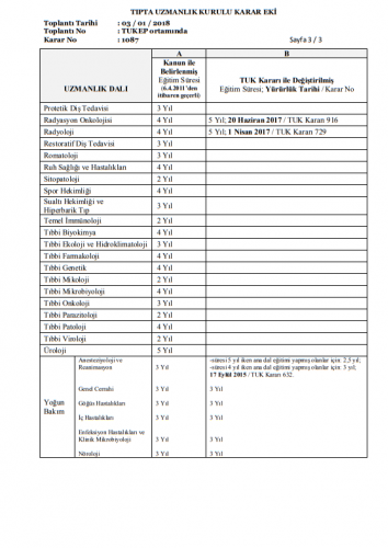 En Son Değişikliklerle Tıpta Uzmanlık Dallarının Eğitim Süreleri