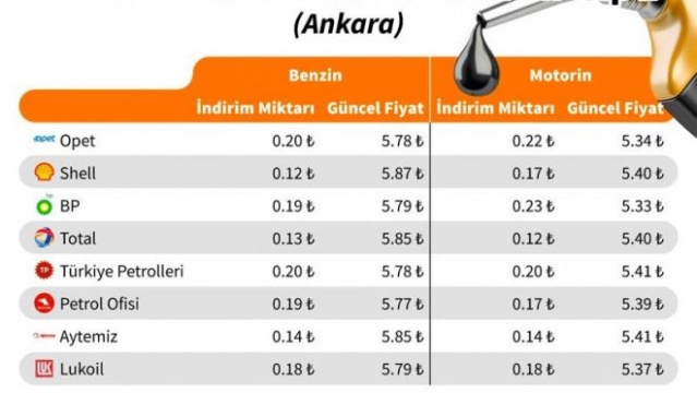 EPDK'nın uyarısı sonrasında akaryakıt şirketleri, benzin ve motorinde indirime gitti. Belirli bir fiyat duyurulmadığı için şirketlerin indirimi farklı oranlarda oldu. En yüksek indirimi İstanbul'da Türkiye Petrolleri yaparken, İzmir'de ve Ankara'da ise Opet yaptı. En düşük indirimler ise BP ve Shell'den geldi. İşte tüm fiyatlar: