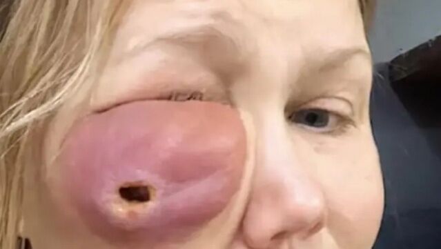 Güzelleşmek adına suratına yaptırdığı dolgu maddesinin aslında silikon çıkması nedeniyle yüzünde koca bir şişlik ve delik oluşan kadının son hali görenleri de şaşkına uğrattı.