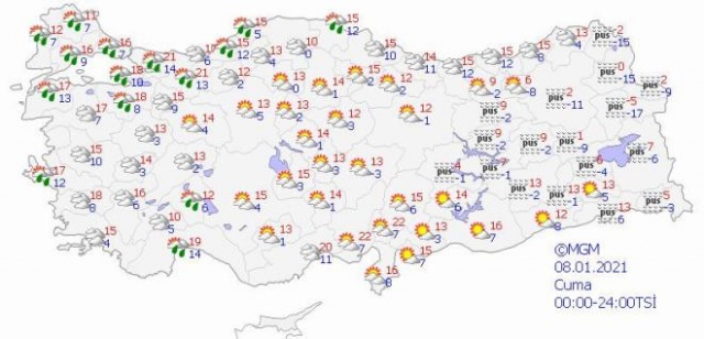 Önümüzdeki 5 günün haritalı hava durumu tahmini şöyle: