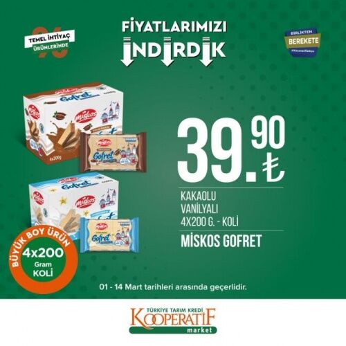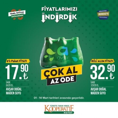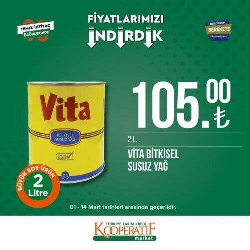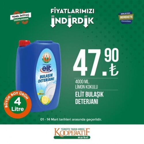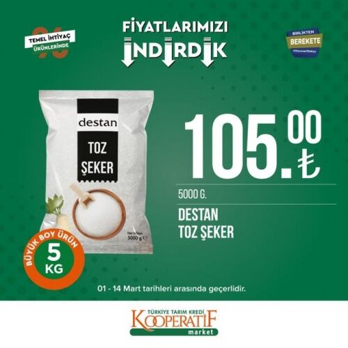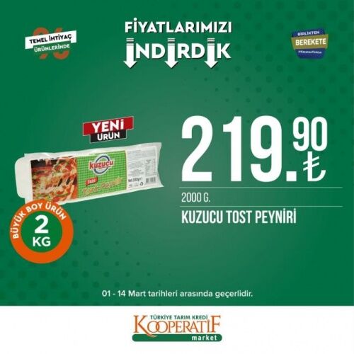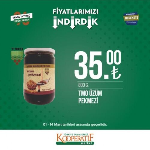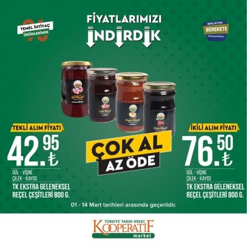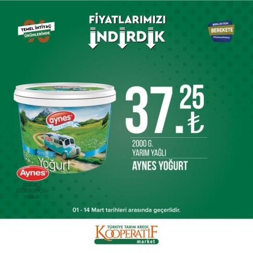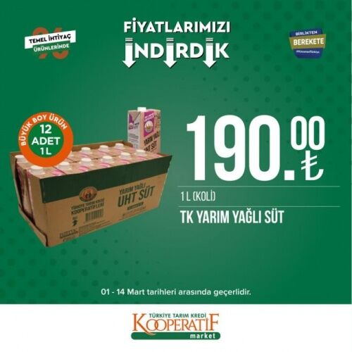 12-14 MART İNDİRİMLİ ÜRÜNLER LİSTESİ Öte yandan Tarım Kredi Kooperatif Marketleri'nde mart ayına özel güncel indirimli ürünler listesi yayınlandı. 12-14 Mart tarihleri arasında temel ihtiyaç ürünlerinde birçok yeni indirimler yer alıyor. İşte Tarım Kredi Kooperatif Market güncel indirimli ürünler listesi;