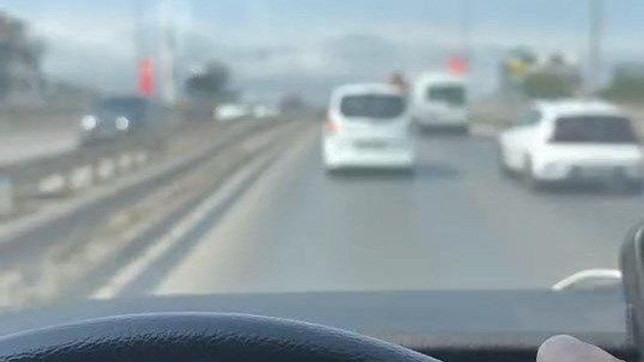 Ambulans şoförünün kornaya ısrarla basmasının ardından hafif ticari araç, sağ şeride geçti.