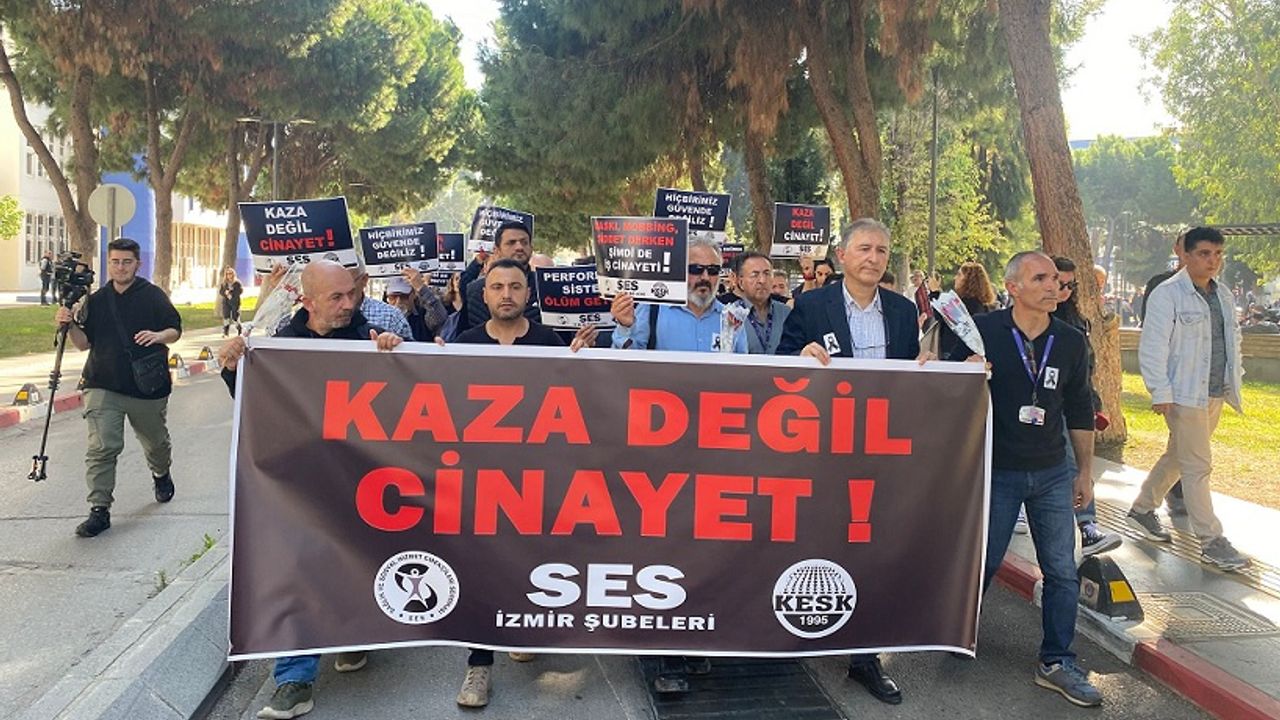 Sağlık ve Sosyal Hizmet Emekçileri Sendikası (SES) İzmir Şubeleri, Ege Üniversitesi Hastanesi içinde PTT kargo aracının çarpmasıyla yaşamını yitiren Ege Üniversitesi Hastanesi Diyaliz Ünitesi çalışanı ve SES üyesi Ali Can için hastane içinde yürüyüş ve basın açıklaması düzenledi.