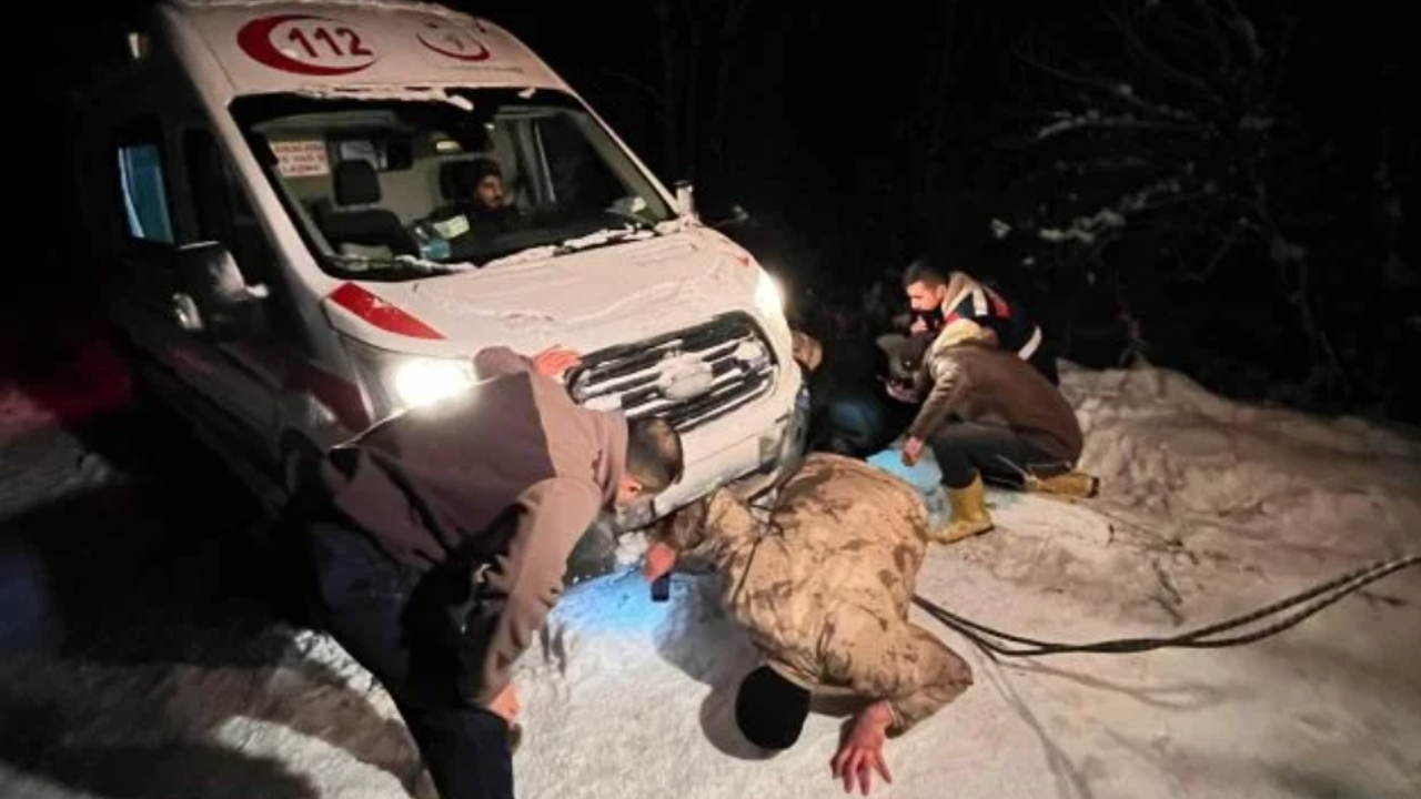 Bingöl’ün Yayladere ilçesine bağlı Güneşlik köyünden hasta almak üzere yola çıkan ambulans, yoğun kar yağışı ve tipi nedeniyle gece saatlerinde yolda mahsur kaldı. İl Özel İdaresi ve jandarma ekiplerinin ortak çalışmasıyla ambulans kurtarıldı.