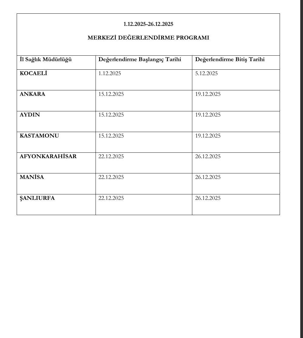 Sağlık Tesislerinde Merkezi Değerlendirme Süreçleri Başlıyor: Aralık Ayı İller Listesi Açıklandı!