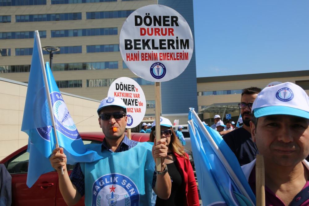 “Elbette, tüm Türkiye’de görev yapan sağlık ve sosyal hizmet çalışanlarının öteden beri yaşaya geldikleri önemli sorunlar var” diyen Bolatçı, sorunların kangren hale geldiğini dile getirerek, “Döner sermayedeki eşitsizlik, nöbet sistemi, aşırı iş yükü, şiddet gibi kangren olmuş sorunlar bunlar. Ve bunlar bugünün sorunu değil. Örneğin döner sermaye adı üstünde, biz sağlık ve sosyal hizmet çalışanlarının alın teri emeğiyle yürüyen bir sistem. Buna karşın bu sistemden yani döner sermayeden hakkımız olanı alamıyoruz. Kimseden sadaka istemiyoruz, hakkımız olmayana da göz dikmiş değiliz. Biz hakkımızı istiyoruz!” vurgusunu yaptı.