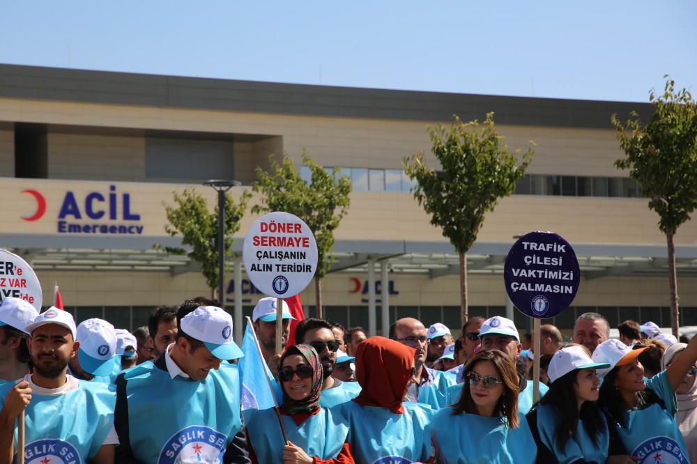 Yüzlerce sağlık çalışanının katıldığı basın açıklamasında konuşan Şube Başkanı Erdal Bolatçı, insanların sağlıklı ve huzurlu bir yaşam sürmesi için gece gündüz çalıştıklarını belirterek, “Bu görevimizi, Sayın Cumhurbaşkanımızın 'hayatımın projesi' dediği en büyük şehir hastanesi 3 bin 800 yataklı Ankara Şehir Hastanesi’nde ifa ediyoruz. Ancak burada görev yapan sağlık çalışanları olarak birtakım sorunlarımız var.” ifadelerini kullandı.