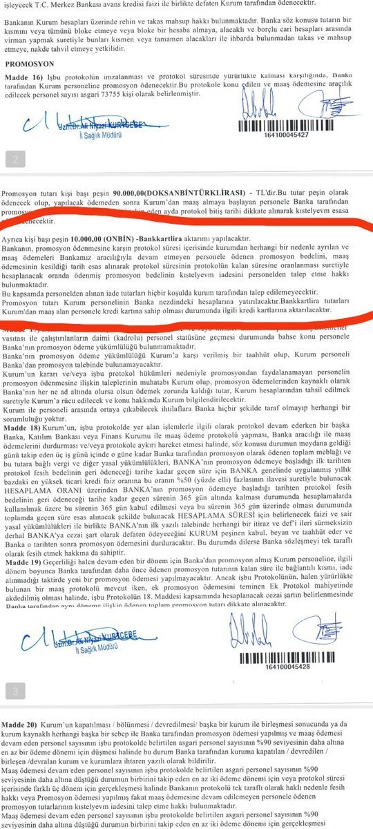 Sağlık çalışanlarına yönelik yeni Ziraat Bankası promosyon protokolü imzalandı. Anlaşmaya göre personellere peşin olarak 90.000 TL nakit ve 10.000 TL tutarında bankkart puanı ödemesi yapılacak. Ancak protokolde yer alan bazı maddeler, çalışanlar arasında ciddi soru işaretlerine neden oldu.