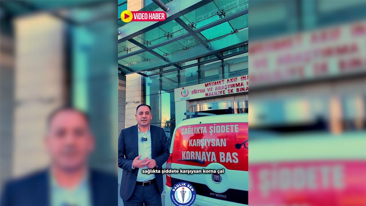 Bu nedenle bir aracın arkasına “Sağlıkta şiddete karşıysanız kornaya basın” yazılı afiş asarak, vatandaşlardan kornaya basarak destek olmalarını istedi.